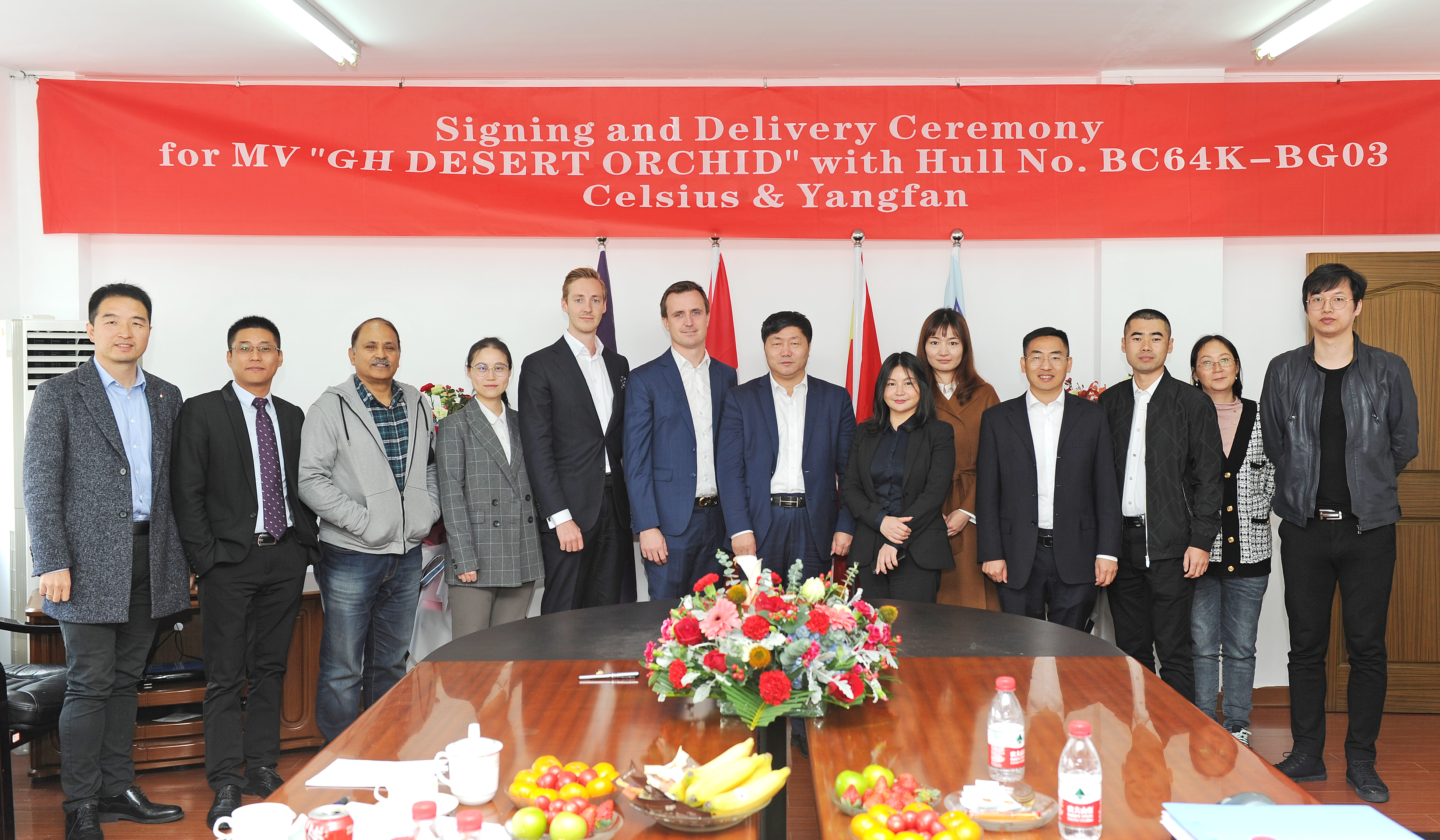 2019年11月19日,揚帆集團下屬舟山大神洲造船有限公司建造的一艘64000噸系列散貨船正式簽字交付。