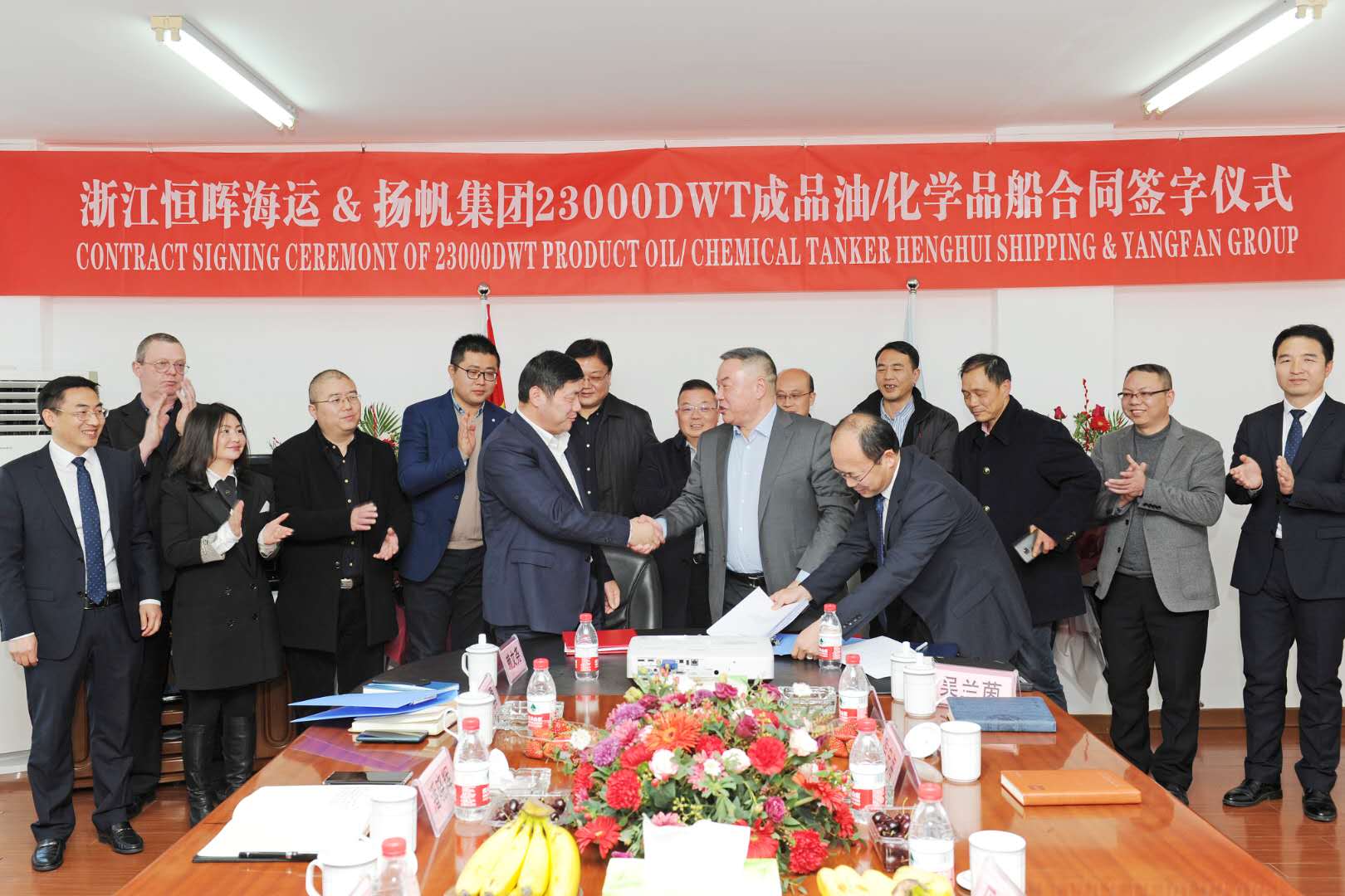 2020年1月1日,揚帆集團與國內(nèi)一船東簽署了一艘23,000噸級成品油兼化學(xué)品船建造合同。該船型總長159.20米,型寬24.80米,型深13.85米,結(jié)構(gòu)吃水9.80米,最大23,000載重噸,液貨艙艙容達(dá)27,000立方米。該船可裝載輕汽油、柴油、2類化學(xué)品等貨品。該項目的簽署為揚帆2020年的市場開拓注入了信心。