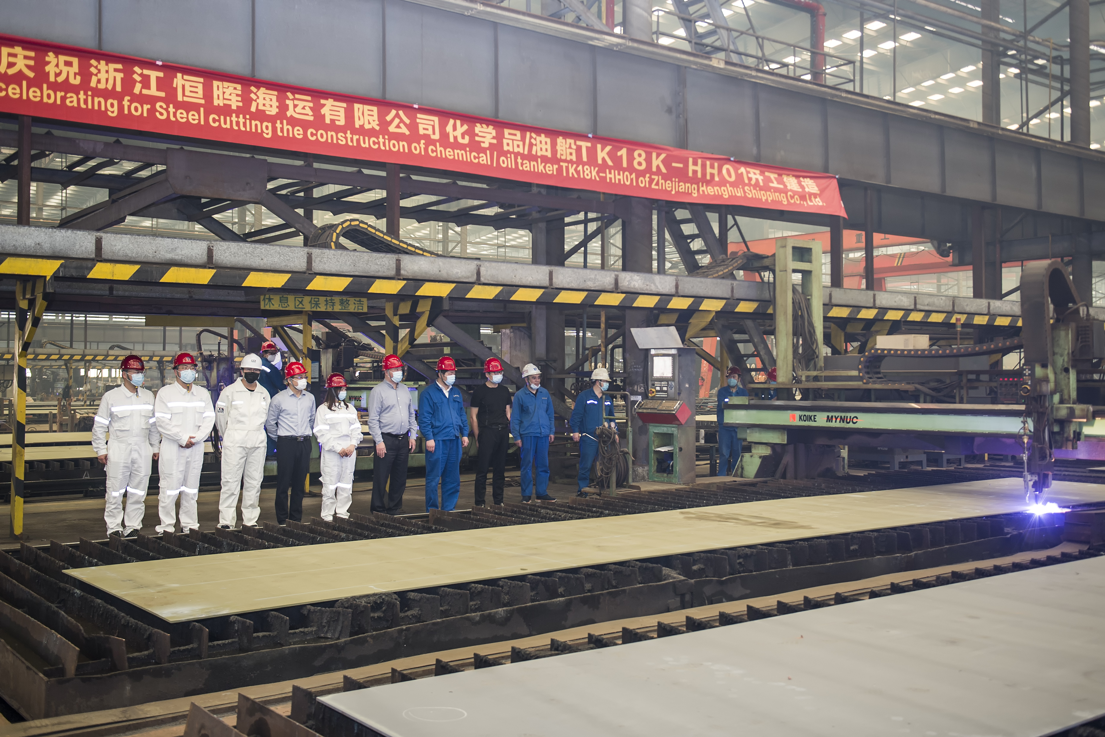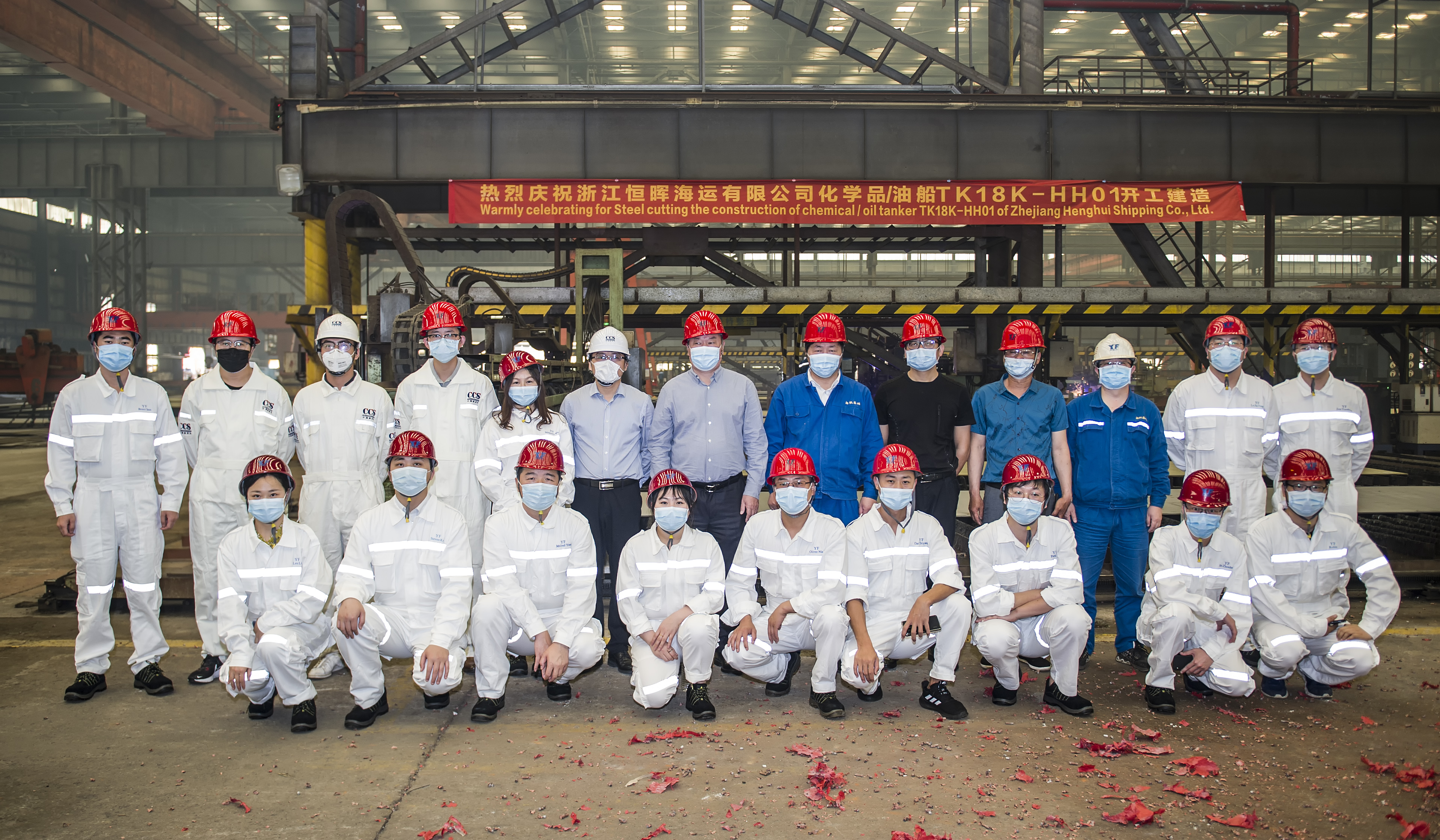 5月19日上午9點28分,由揚帆集團為浙江恒暉海運有限公司建造的18,000噸成品油/化學品船在東海岸船業(yè)有限公司聯(lián)合車間正式點火開工,浙江恒暉海運公司董事長和執(zhí)行董事、揚帆集團總裁等一行參加了開工儀式。該項目合同于2020年1月1日正式簽訂并生效,實際開工時間比原計劃提前近一個月,為船舶如期交付奠定了基礎。